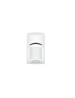 12×12 m detection range, PIR technology, FSP signal processing, NC alarm relay output, tamper protection, EN50130-5 Class II compliant.