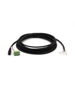 5 m, 4-core (power + signal), ferrule crimped, with DC socket and protected transitions.
